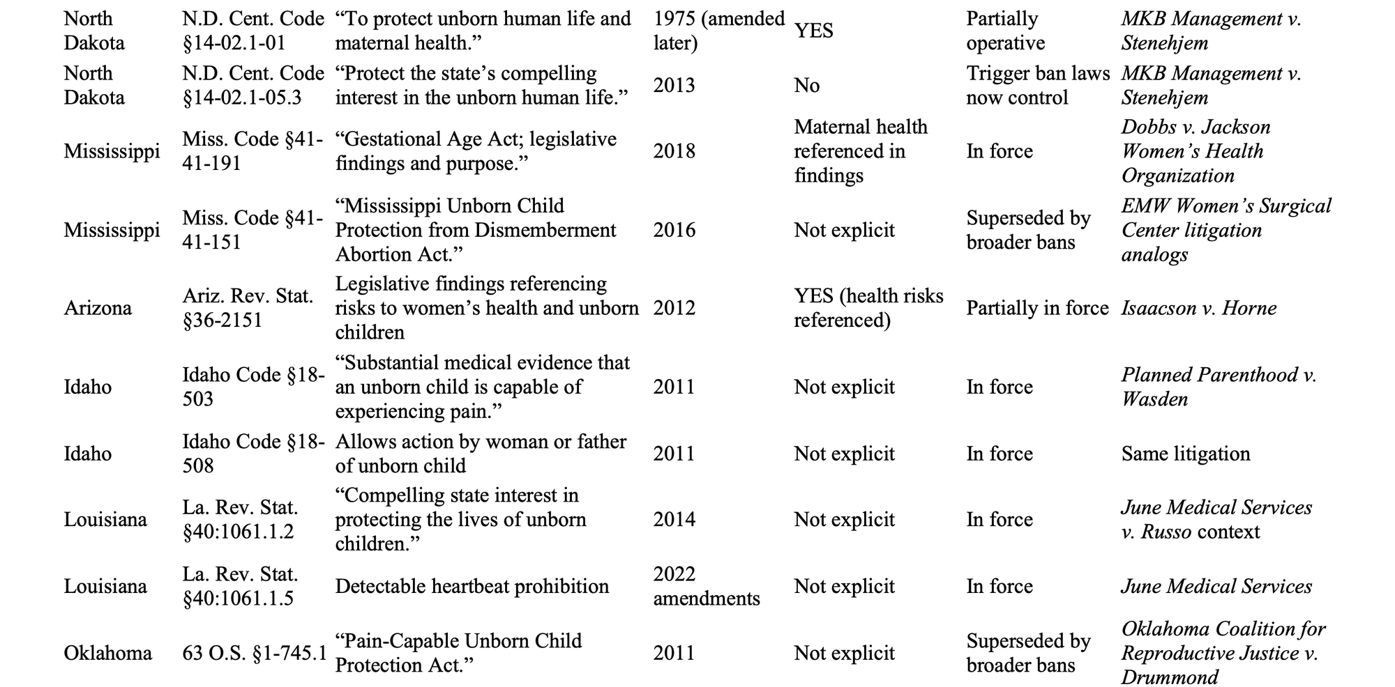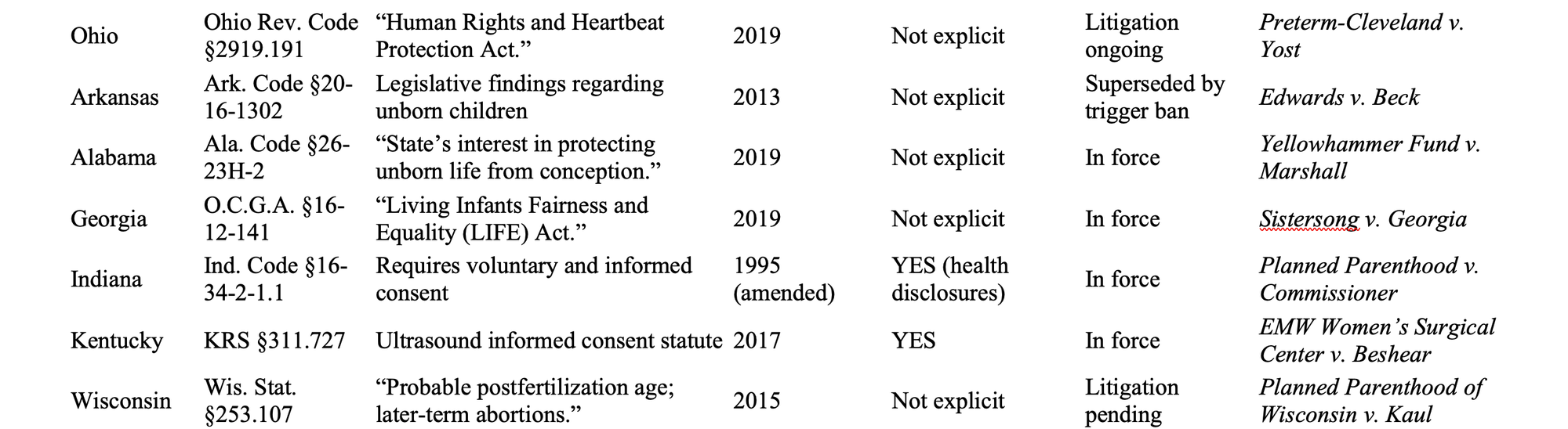 This brings us around to the Dobbs decision that is riddled with religious hubris exemplary of SCOTUS precedent. Of course there is no religiosity spelled outright, but understanding historical context makes it clear. The ideas that “life begins at conception” and “abortion is morally wrong” are derived heavily from Christian religious beliefs. Though supposedly irrelevant, 5 of the 9 Justices are affiliated with Catholicism. I argue: it shows. Justice Alito cowardly asserts that abortion rights are not outlined in the US Constitution are therefore not protected. Huh. Pregnancy isn’t outlined in the Constitution either, so that means it can’t be regulated, right? Alito also asserts that our nation should rely on laws enacted in the 19th century—you know, the century during most of which people did not know that soap should be used for hygiene. “Protecting innocent life” has been declared a state interest, and yet (as I have discussed) the term “innocent” isn’t defined. Again, it is not a far leap to understand that in this Christian context it is understood as a pregnancy. Please note: there is no apparent state interest in protecting the innocent life of the pregnant person, which strikes me as the greater moral wrong. So I got curious and asked the question of the vast amount of information on the Internet: what does it look like to lay out state regulations asserting “an interest” in protecting a pregnancy vs protecting the pregnant person. I know you will be shocked to learn that there is a substantially higher amount of regulations protecting the fetus and not a whole lot dedicated to protecting the pregnant person.